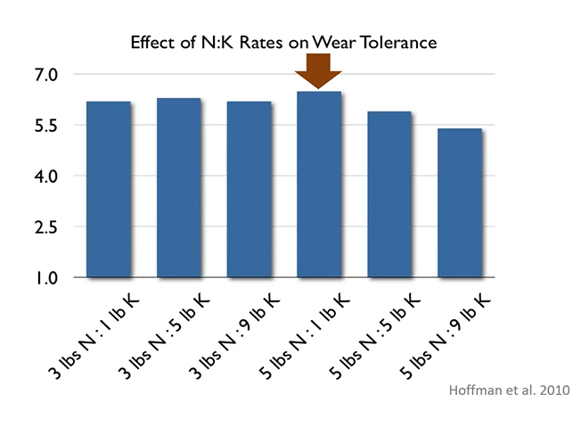 - Hoffman, L., Ebdon, J. S., Dest, W. M. & DaCosta, M. (2010). Effects of Nitrogen and Potassium on Wear Mechanisms in Perennial Ryegrass: I. Wear Tolerance and Recovery. Crop Science 50, 357–366 https://doi.org/10.2135/cropsci2008.08.0473
