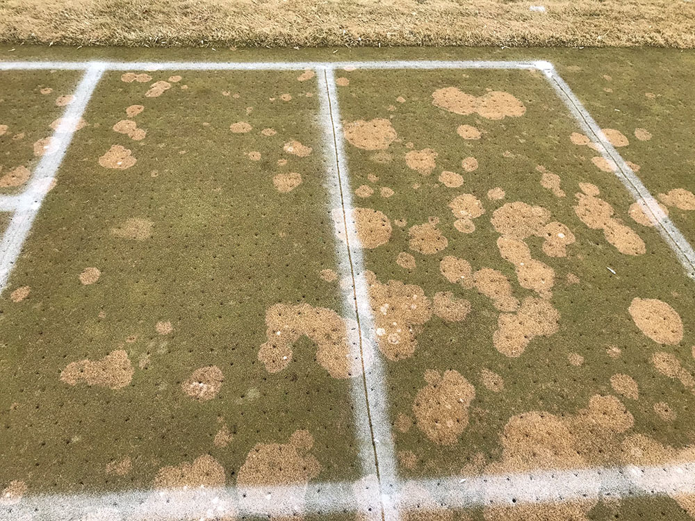 Des résultats similaires sont obtenus sur agrostide avec Rhizoctonia Solani13. Une incidence plus élevée de la maladie est observée lorsque le rapport N/K est déséquilibré (quantités d’azote trop fortes par rapport aux quantités de potassium). En contraste, sur la même espèce, les quantités de potassium appliquées dans une étude récente menée sur 6 ans ne semblent avoir aucun impact sur le développement du pathogène9.