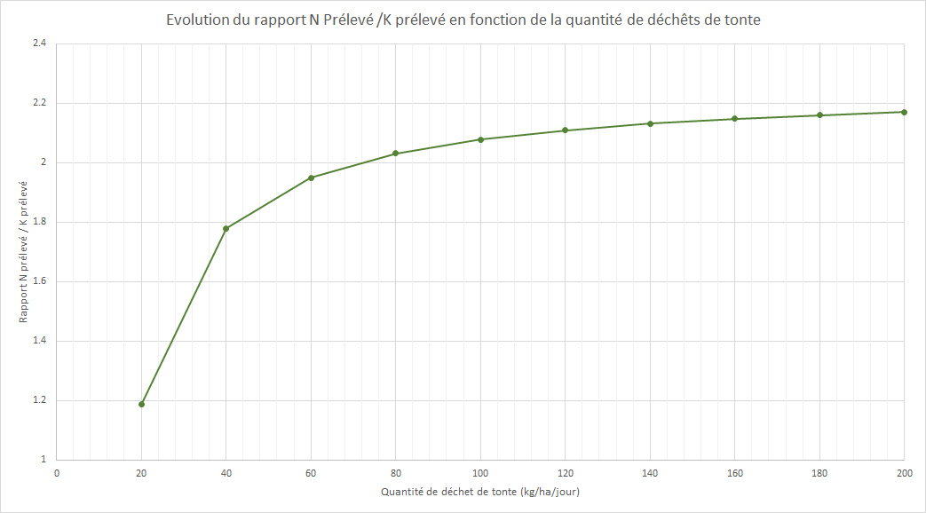 Il est clair que la quantité de potassium estimée par le laboratoire est élevée, d’autant plus si l’intendant choisit de garder sa fumure azotée à 180 kg N/ha/an (rapport N/K = 0.4).